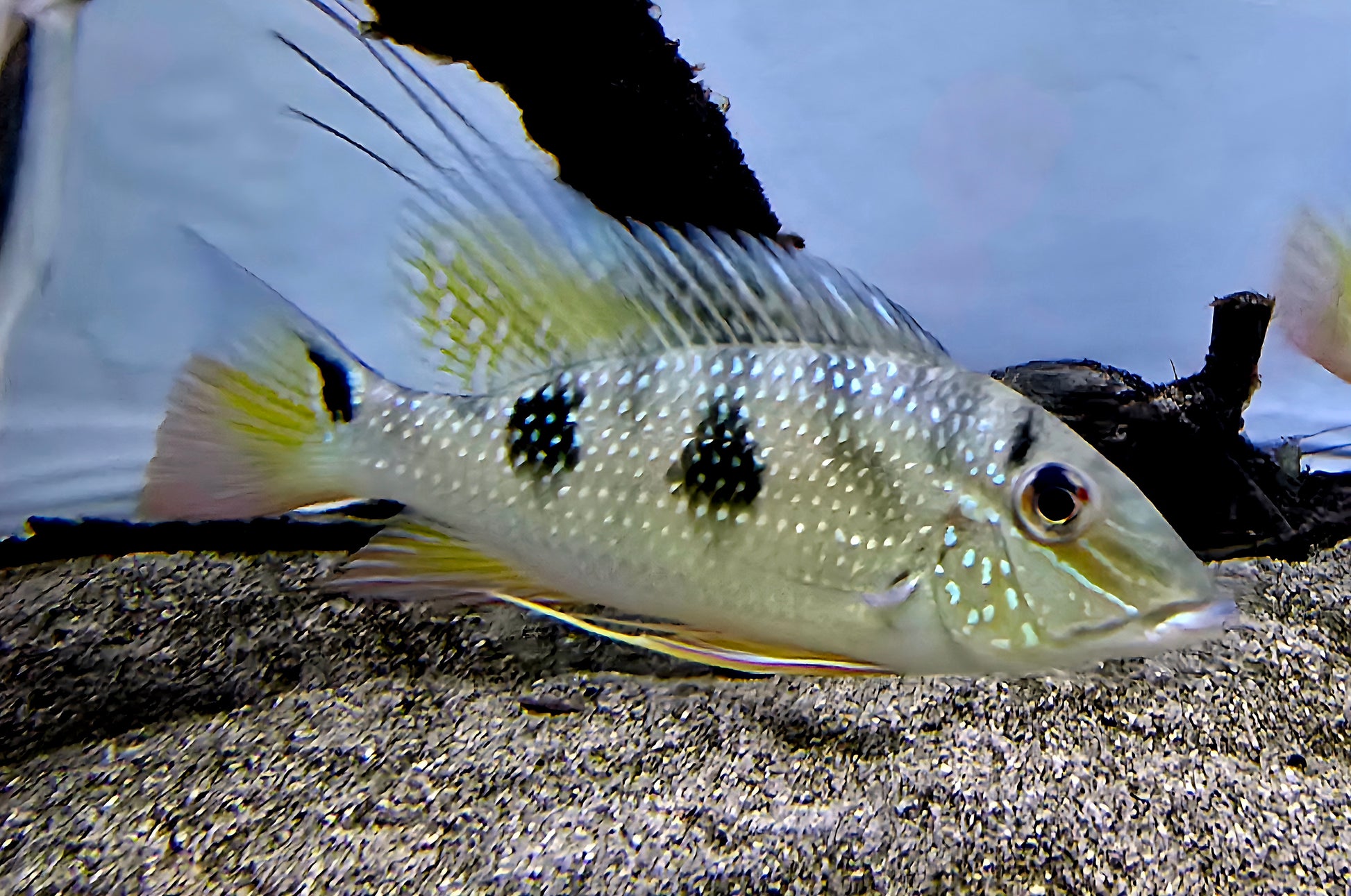 Wild Three Spot Earth Eaters (Satanoperca daemon) spawned here on November 1st 2025 yielding a healthy batch of fry. These fish live with Altum angelfish in nature and will make excellent companions. These clean and healthy juveniles are available now.