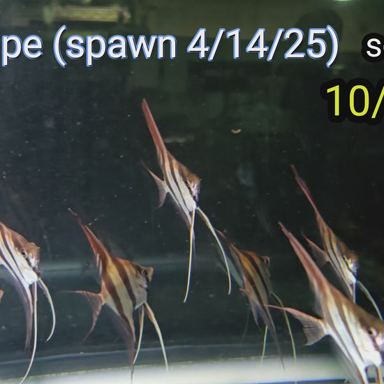 WHY PURCHASE FISH HERE: The Altum Angelfish we sell are all pure genetically, strong, healthy, tank ready fish, that come free of parasites and harmful pathogens. It is my belief that keeping the fish to past 3 months of age will ultimately show us if any of the animals are not growing properly. Only the best animals that have potential for growth into big fish are ever sold. You can expect these fish to all have long fins and good striping. Every Pterophyllum Altum pair that I am working here now here is wild caught, therfore, F1 fish offered here have solid genetics. They will be fully videos documented pre and post spawning for each successfully spawned pair. Every group of F1 Juveniles sold here will have a spawn date. Quality and Transparency. This is what I believe separates Shoreline Aquatics tank bred Altum Angelfish from fish you can source elsewhere.